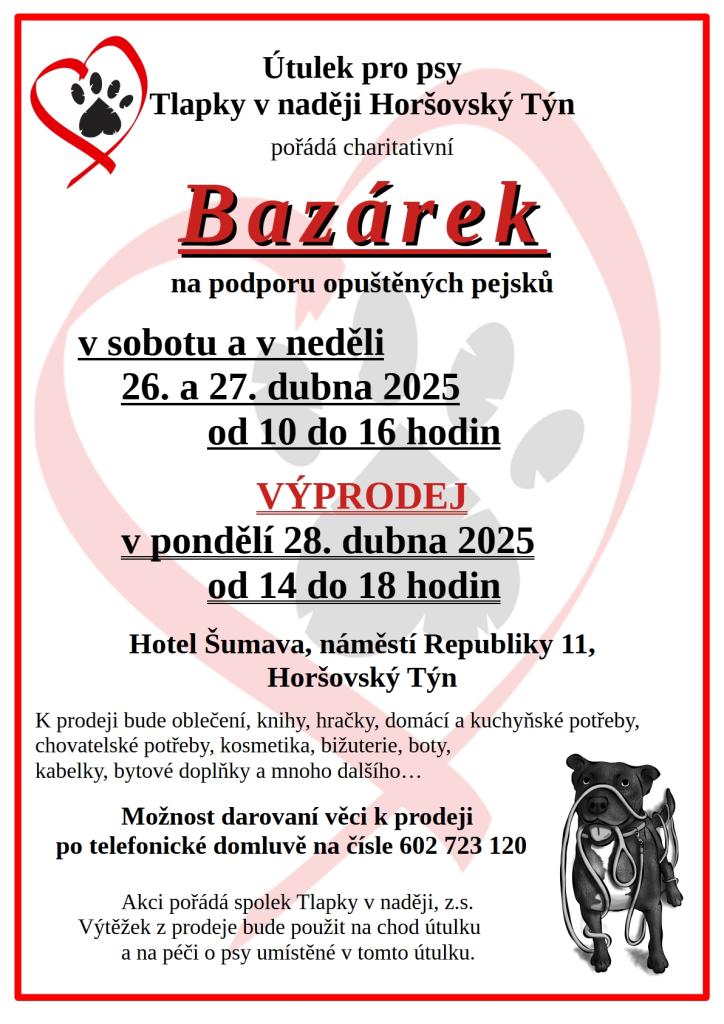 Bazárek na podporu opuštěných pejsků